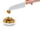 Knibbles clever barbed blade design creates air pockets to stop the cheese from sticking. Two little forks situated at the end of the blade is a forking brilliant idea for picking up your cubes of cheese or antipastos. The rounded top edge of the blade allows you to spread with ease without ripping up your bread and scrapes every last bit from plastic containers without scratching them.