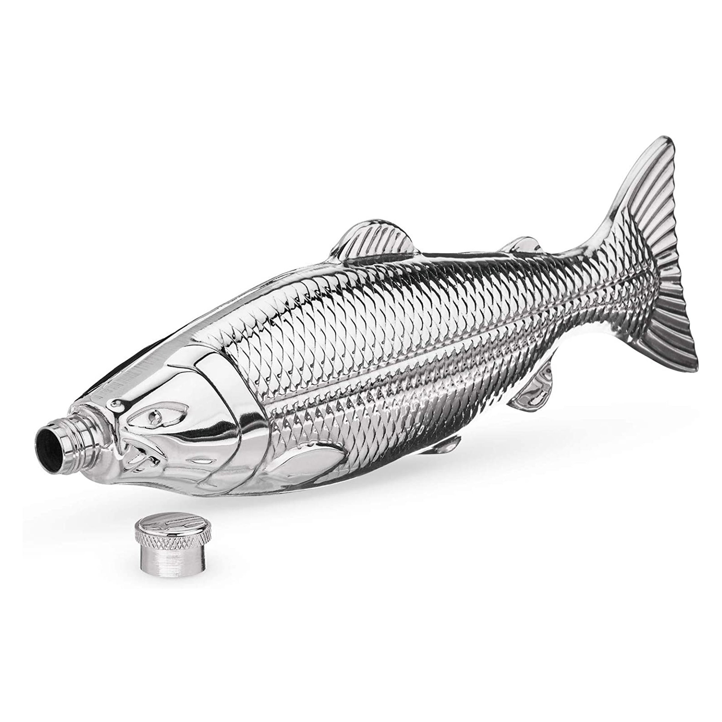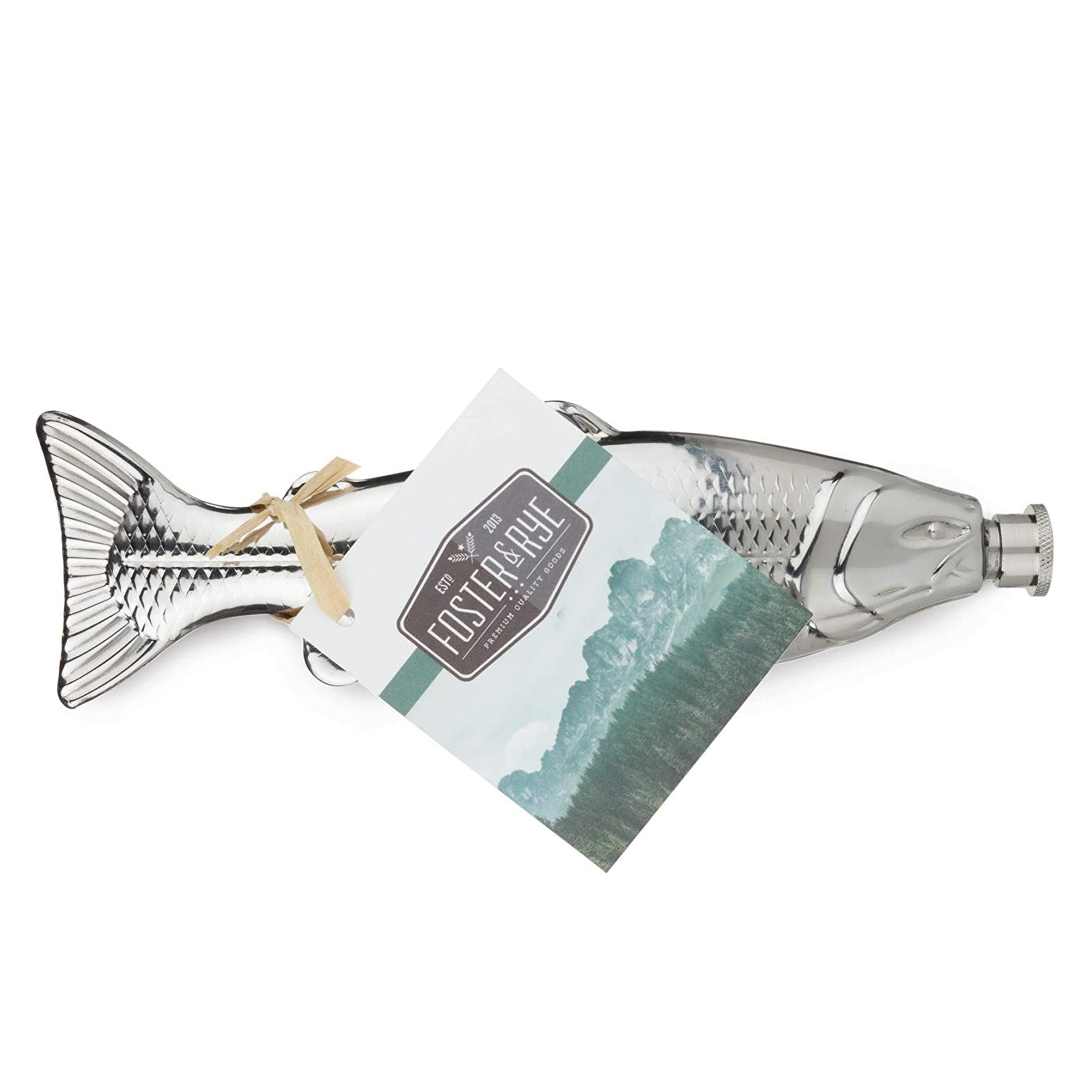 Foster and Rye Stainless Steel Trout Flask is cast in shimmering stainless steel, our true-to-life trout flask is perfect for anyone who can drink like a fish. Tucking covertly into a backpack or fishing vest pocket, it holds four ounces of any elixir. Really, what better way to get sloshed?
