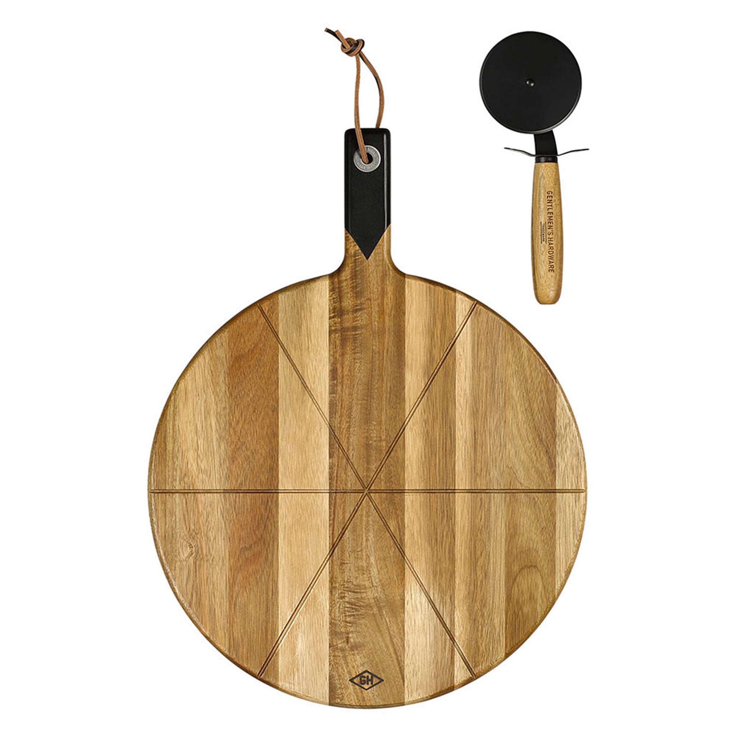Gentlemans Hardware Pizza Cutter and Wooden Serving Board
