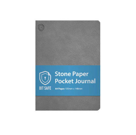 Bit Safe A6 Journal is the one notebook that will outlast all others. Keep what you write safe and secured through all types of seasons. These journals are made from a special paper formulated entirely from stone. Yes you read that right! Stone! It's made using a mineral produced from limestone - Calcium Carbonate (CaC03) and combined with HDPE resin, making it a higher recyclable product than paper itself. Calcium Carbonate (CaCO3) is 16 million times more abundant than trees on earth.