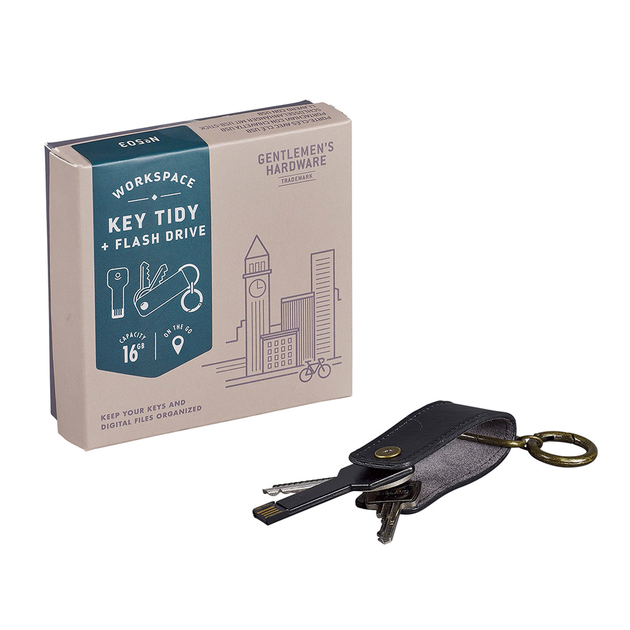 Keep those keys tidy with this handy key tidy keyring. Stop them jingling around in your pocket by having them locked in secure and organised. Also features a 16GB USB and a carabiner. Finished with antique brass metal components.