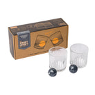 - Includes: (2) Twin Tumbler Glasses and (2) Granite Spherical Whiskey Stones