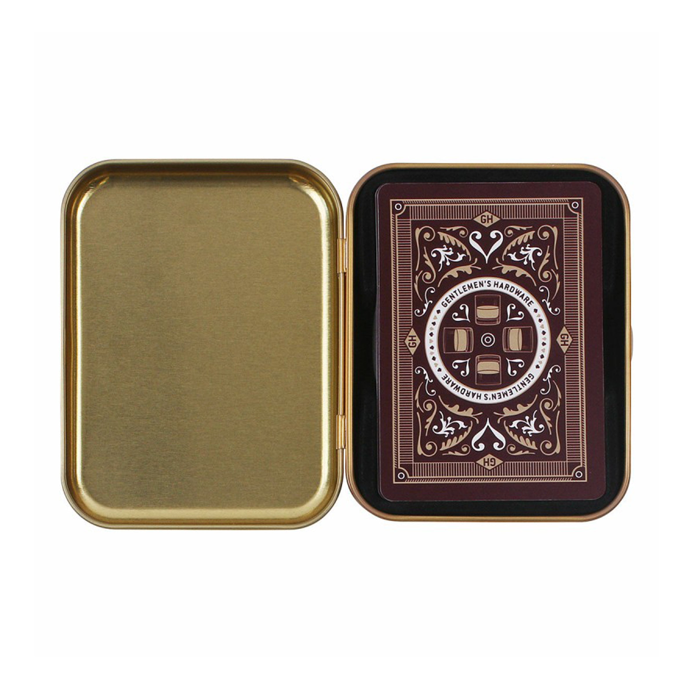 Gentlemans Hardware Whisky Trivia Playing Cards allow you to practice your poker face or play go fish in style. Whether you win or lose, our waterproof playing cards with whisky designs make even a bad hand look good. This card deck features classic whisky trivia facts and illustrations on each playing card and a 2-piece metal tin travel case to take these waterproof deck of cards anywhere you go. This coaster set is a great gift for the bartender friend or game night host in your life.