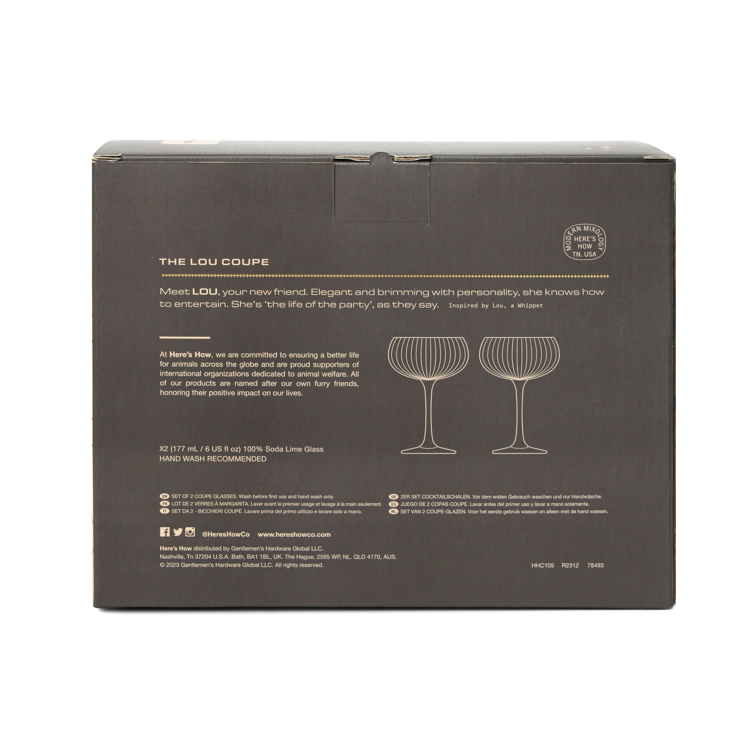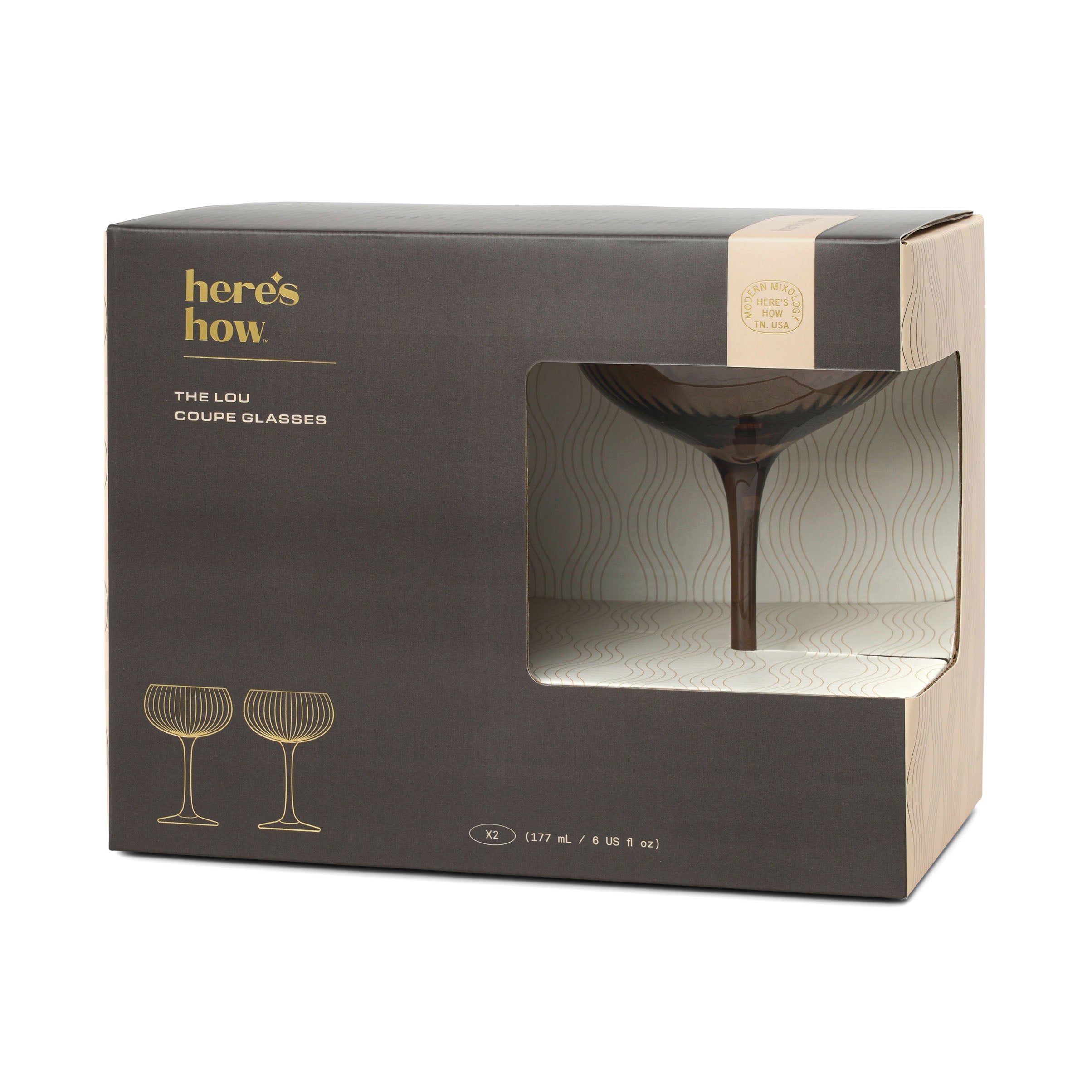 Elevate your cocktail making with The Lou Coupe Glass in Smoke. Filled to the brim with espresso martini or your own bespoke cocktail, what could be more classic? A stand out at all house parties. Made from Lime soda Glass and holds 177mls.