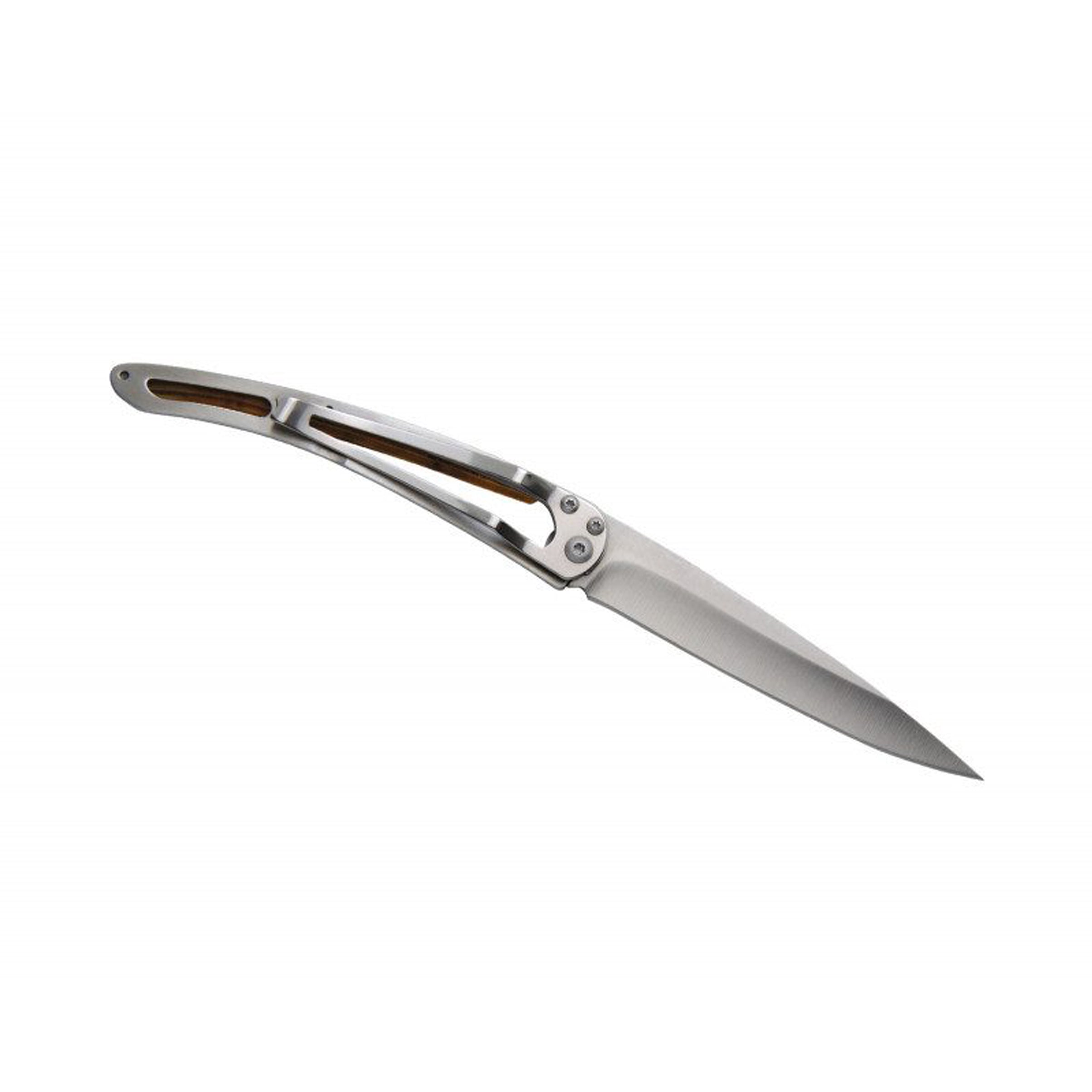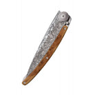 Deejo Juniper Wood Knife - Art Nouveau, is a knife full of personality, the ultimate statement piece. Deejo knives are made from Ultra-light 420 stainless steel, with a matt finish. Each knife has a secure liner lock system decorated with fine laser engraving and a belt clip. The handle is made from Solid Juniper wood. Juniper wood is naturally fragrant with a light, peppery smell. Carefully carved into beautiful Deejo handles showcasing the delicate veins of each piece of wood in the handles, making your Deejo knife a preciously unique piece.