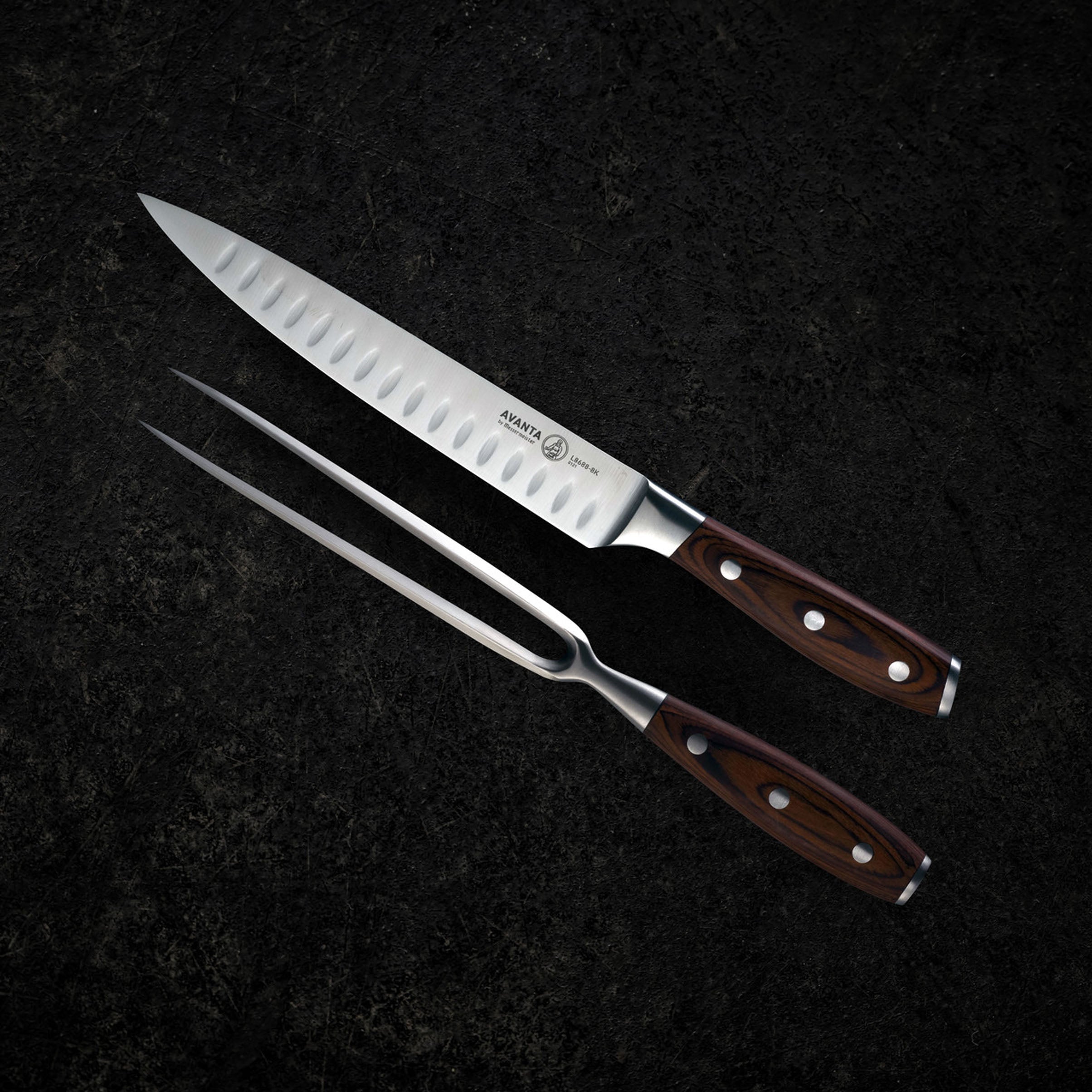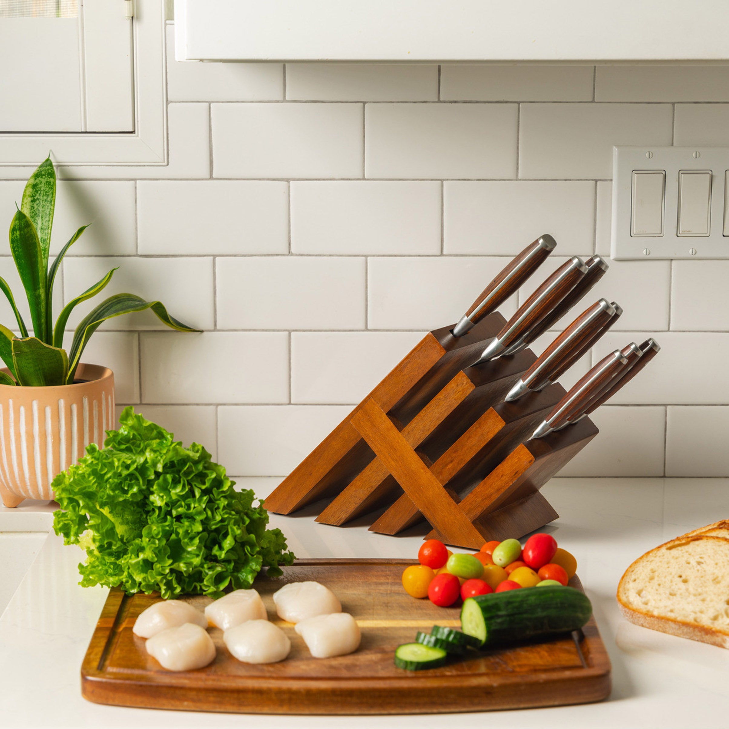 Meet the ultimate kitchen upgrade: the Messermeister Avanta Pakkawood 10 Piece Knife Block Set. This thoughtfully curated set includes all the essential blades for slicing, chopping, carving, and prepping like a pro. Each knife is crafted with high-quality stainless steel for razor-sharp performance and finished with ergonomic pakkawood handles for a warm, natural feel. The stylish wood block keeps your tools organised and within reach, making everyday meal prep feel effortlessly elevated. Whether you're a seasoned chef or building your first serious collection, this set delivers the craftsmanship, balance, and beauty that every kitchen deserves. From slicing and chopping to carving and precision work, each knife is crafted for a specific purpose whether it's preparing vegetables, meats, or serving at the table.