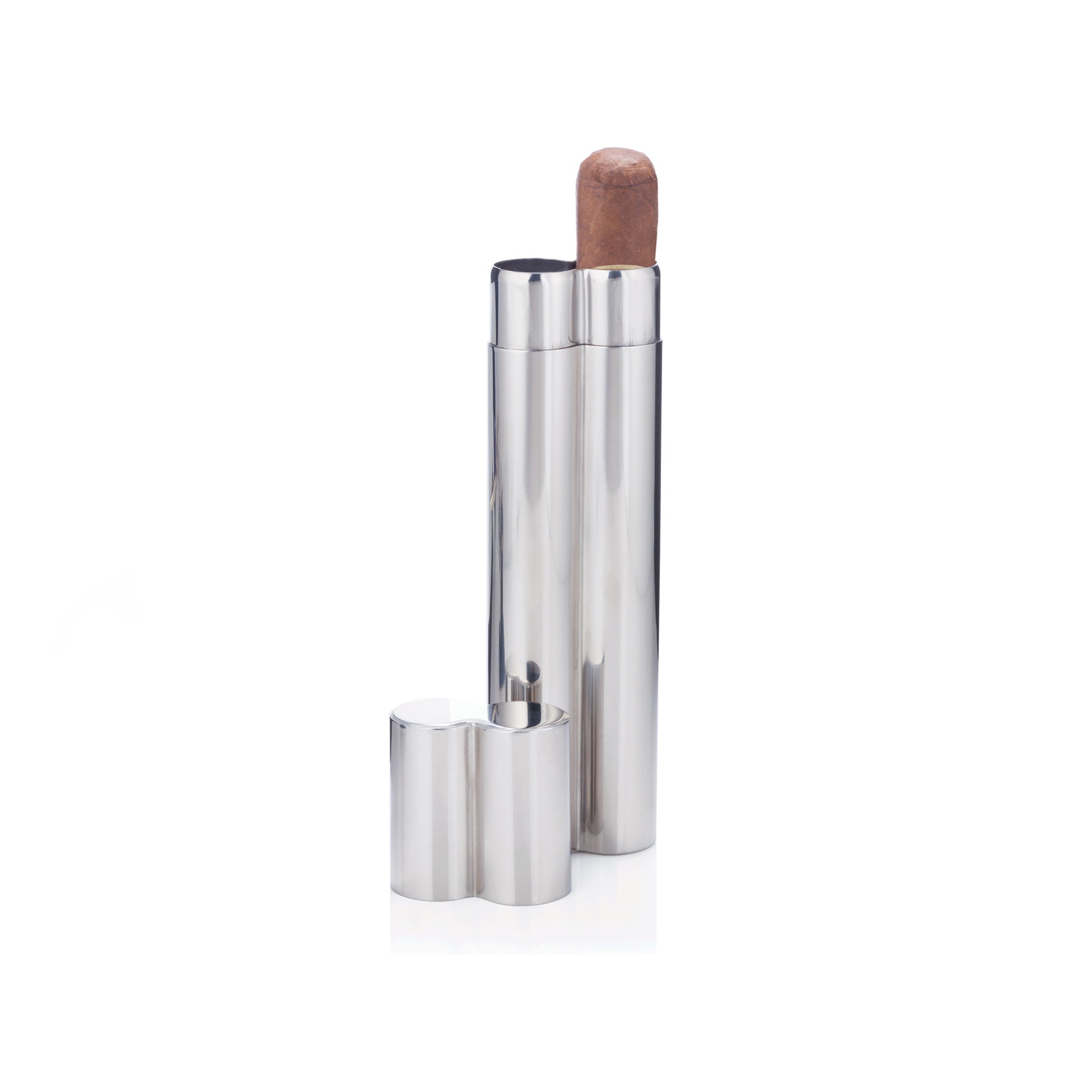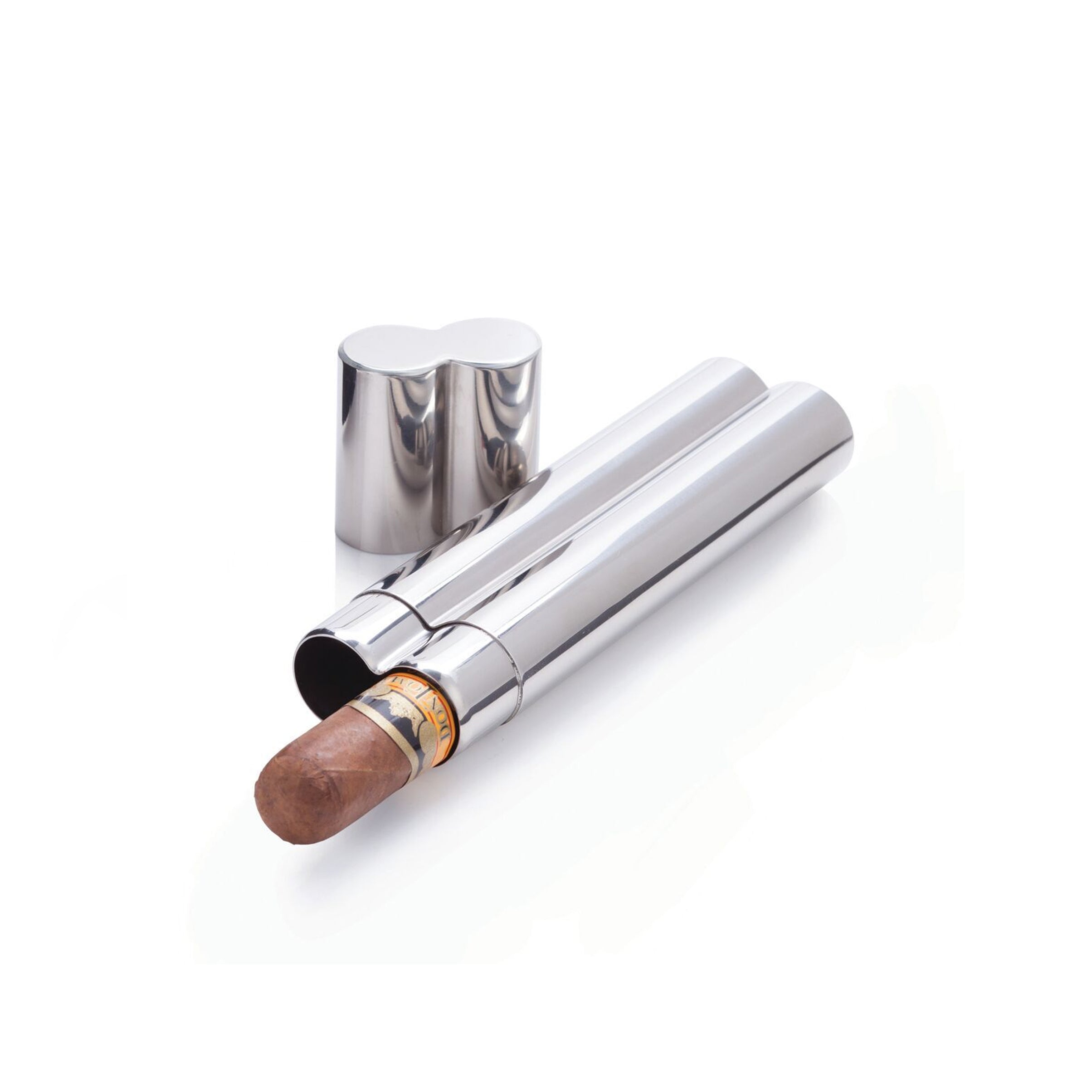 Keep two cigars in a classic 52-gauge stainless steel case to have them close at hand at any opportune moment. Opening the cap releases the rich, leathery aroma of hand-rolled tobacco within. Hand wash only. Material: stainless steel
